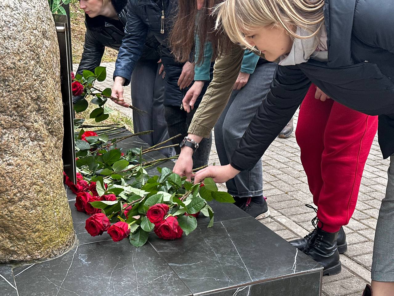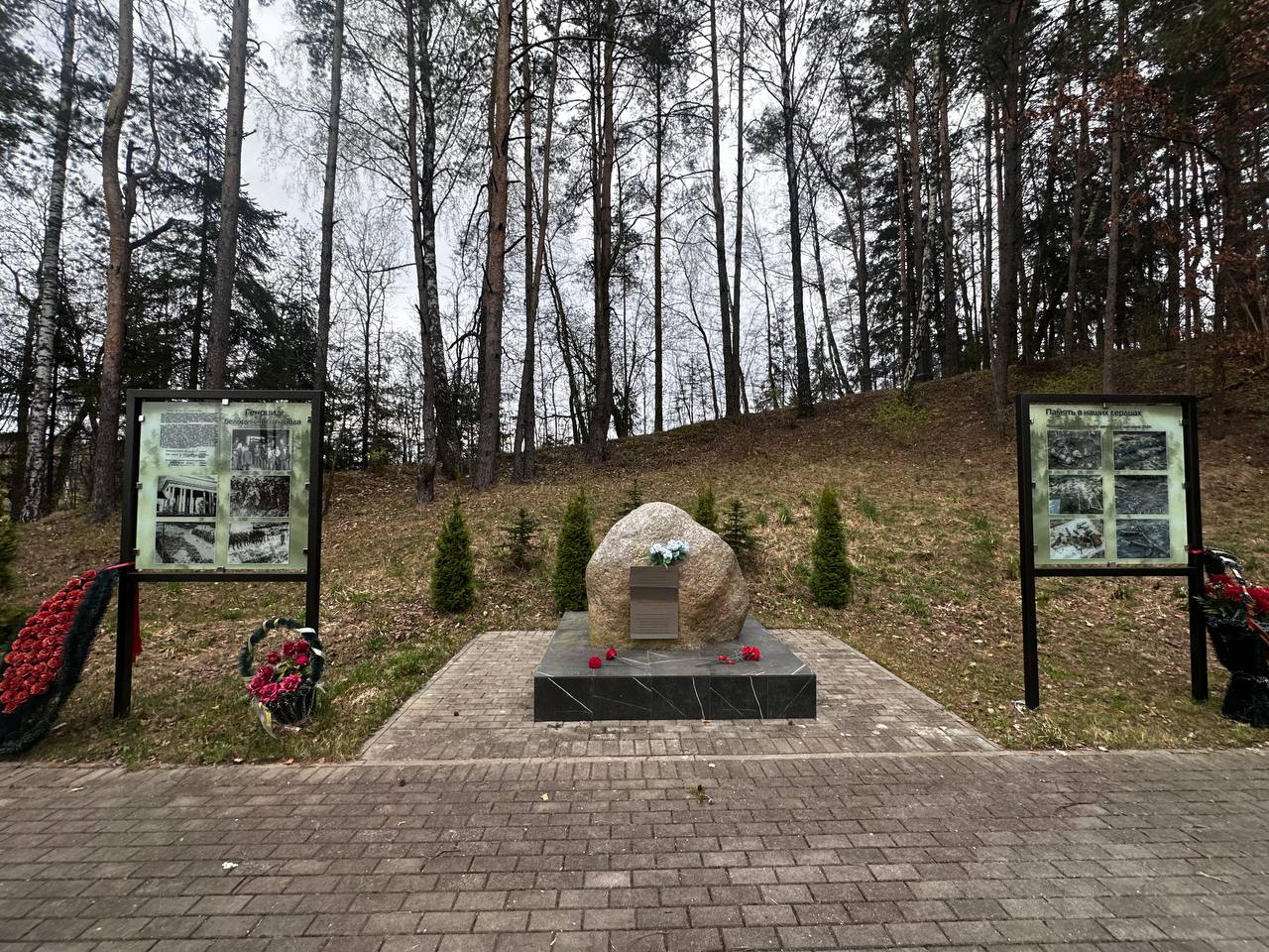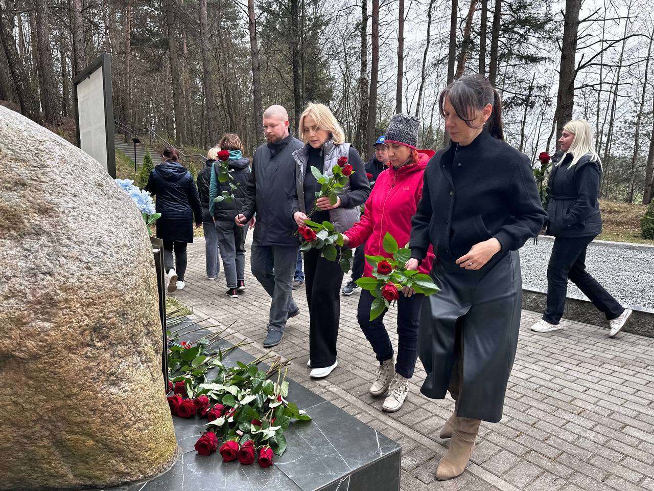 Сегодня на этом месте — памятный знак, скромный свидетель огромной боли. И именно сюда приехали представители строительного профсоюза, чтобы сказать: мы помним.